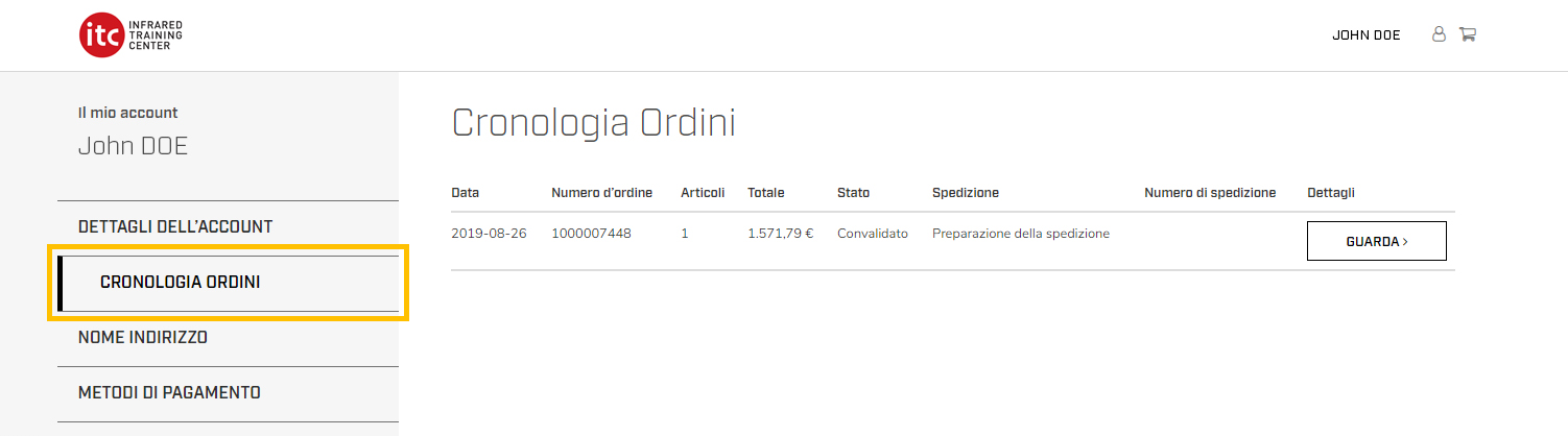 - Per verificare lo stato dell'ordine, accedi al tuo account. Nella scheda della Cronologia degli ordini, troverai la lista di tutti gli ordini e il loro stato.