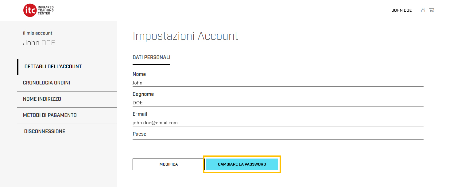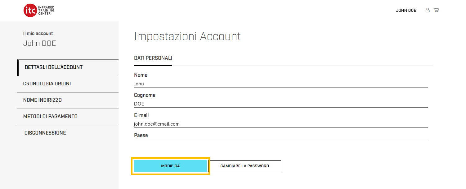 Puoi aggiornare i tuoi dati personali in qualsiasi momento accedendo alla scheda dei Dati dell'account e cliccando sul pulsante Modifica.